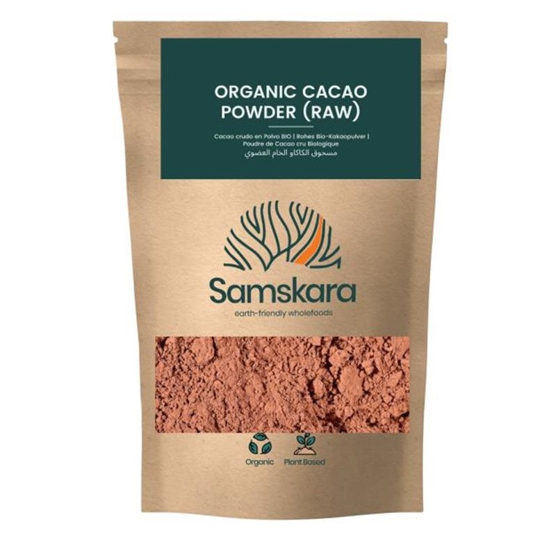 Cacao en polvo 100% crudo y orgánico, obtenido por prensado en frío de granos de cacao