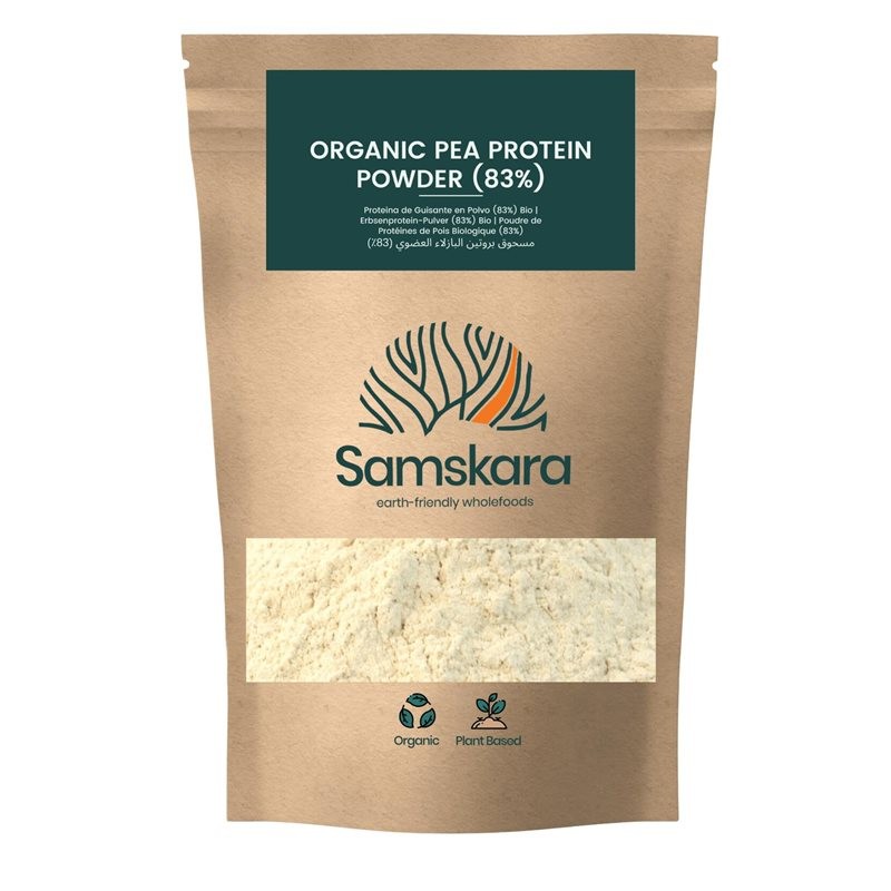 Proteína en polvo derivada de guisante amarillo orgánico, con un 83% de concentración